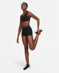 The Nike Pro Shorts are made with stretchy, sleek and supportive fabric that wicks sweat to help you stay dry and comfortable during your workout. This product is made with at least 50% recycled polyester fibers. Benefits - Nike Dri-FIT technology helps you stay dry, comfortable and focused. - A wide, mid-rise elastic waistband feels supportive around your core. Product Details - Tight fit for a body-hugging feel - 78-83% polyester/17-22% spandex - Material percentages may vary. Check label for actual content. - Machine wash - Imported - Shown: Black/Iron Grey - Style: CZ9857-014 SIZE & FIT Tight fit: snug and form-fitting Medium support: feels ke a snug hold to keep everything in place Mid-Rise: sits just below your natural waist (smallest part of your torso)