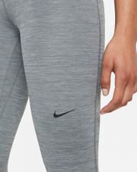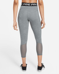 Pushing through a challenging set or counting down the clock, feel limitless in these Nike Pro leggings. Lightweight and stretchy, the smooth fabric dries quickly to help you stay ready when your workout heats up. Mesh at the calves lets moisture escape so that finishing strong is no sweat. Product Details - Body: 78-83% polyester/17-22% spandex. Mesh: 82% polyester/18% spandex. - Material percentages may vary. Check label for actual content. - Machine wash - Imported - Shown: Smoke Grey/Heather/Black/Black - Style: CZ9803-084 SIZE & FIT Tight fit: snug and form-fitting Medium support: feels ke a snug hold to keep everything in place Crop length: hits at lower calf Mid-Rise: sits just below your natural waist (smallest part of your torso)