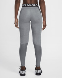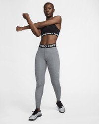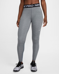 The Nike Pro Leggings are made with sweat-wicking fabric and mesh across the calves to keep you cool and dry. Soft, stretchy fabric moves with you as you sprint, lunge and stretch. This product is made with at least 50% recycled polyester fibers. Benefits - Nike Dri-FIT technology helps you stay dry, comfortable and focused. - A wide, smooth mid-rise waistband feels supportive around your core. - Ventilated mesh panels along the back of the lower legs create airflow for breathability. Product Details - Tight fit for a body-hugging feel - Mid rise - Body: 83% polyester/17% spandex. Mesh: 81% polyester/19% spandex. - Machine wash - Imported - Shown: Smoke Grey/Heather/Black/White - Style: CZ9779-084 SIZE & FIT Model is wearing size S and is 5′8″173cm Tight fit: snug and form-fitting Medium support: feels ke a snug hold to keep everything in place Fl length: hits below ankle Mid-Rise: sits just below your natural waist (smallest part of your torso)