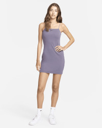 Grounded in style, comfort and versatility, meet our take on luxury loungewear. Our soft mini-ribbed jersey is stretchy with a slight drape, making it perfect for everyday wear. With thin straps and a square neckline, this fitted mini dress is casually chic. Product Details - 61% polyester/31% lyocell/8% spandex. - Center back seam - Embroidered Swoosh logo - Machine wash - Imported - Shown: Daybreak/Black - Style: FN4157-509 SIZE & FIT Model is wearing size S and is 5′11″180cm Tight fit: snug and form-fitting