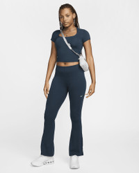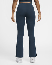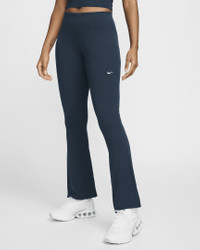 Grounded in style, comfort and versatility, meet our take on luxury loungewear. Ribbed fabric is soft with just the right amount of stretch, while hem vents add a flared look. All that's left to decide is if you're going to pair these leggings with the matching top or style it your way. Benefits - Our soft mini-ribbed jersey is stretchy with a slight drape, making it perfect for everyday wear. - Tight fit flares from the knee down adding dimension to your silhouette. Product Details - Elastic waistband - Embroidered Swoosh logo - 61% polyester/31% lyocell/8% spandex - Machine wash - Imported - Shown: Armory Navy/Sail - Style: FQ2113-478 SIZE & FIT Model is wearing size S and is 5′10″178cm Tight fit: snug and form-fitting Fl length: hits below ankle High-Waisted: sits at or above your natural waist for more coverage