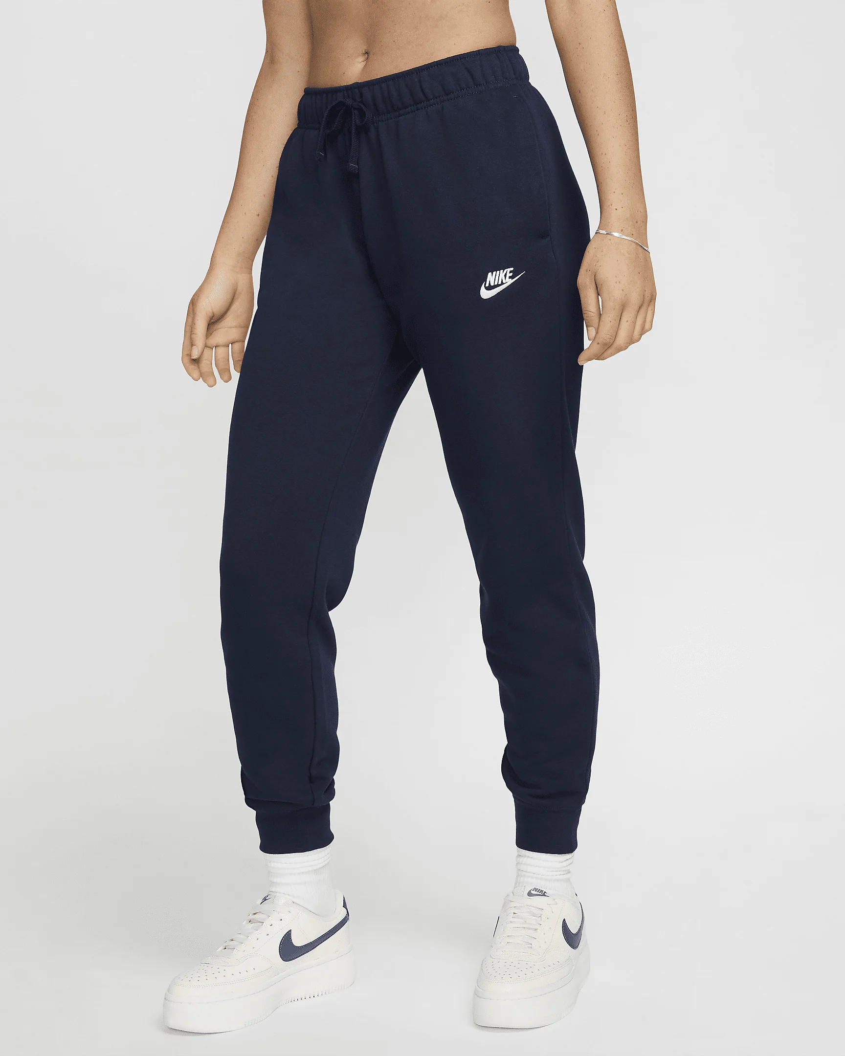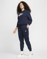 Club Fleece, universally loved for its coziness and consistency, is for everyone. These mid-rise Club Fleece pants have a soft, familiar feel that makes it easy to stay warm and comfortable. Benefits - Our best-selling fleece for a reason, Club Fleece has a cozy, familiar feel and consistent fit you can return to again and again. Brushed for added warmth and softness, it’s an ideal layer for colder temperatures. - Soft and stretchy, the ribbed cuffs help show off your shoes. - Pockets provide quick storage for keys, phone and cold hands. Product Details - 80% cotton/20% polyester - Flat drawcord and elastic waist - Embroidered Futura logo - Machine wash - Imported - Shown: Obsidian/White - Style: DQ5191-451 SIZE & FIT Model is wearing size S and is 5′8″173cm Standard fit: easy and traditional Fl length: hits below ankle