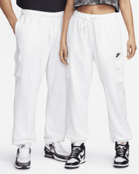 Club Fleece, universally loved for its coziness and consistency, is for everyone. With a longer, extra-roomy leg, these mid-rise pants are the perfect fit for your favorite fitted tops and hoodies. Cargo pockets add storage for your daily essentials. Benefits - Our best-selling fleece for a reason, Club Fleece has a cozy, familiar feel and consistent fit you can return to again and again. Brushed for added warmth and softness, it’s an ideal layer for colder temperatures. - Elastic cuffs help the fabric gather for a relaxed look that still lets your shoes shine. Product Details - 80% cotton/20% polyester - Embroidered Futura logo - Flat drawcord and elastic waist - Machine wash - Imported - Shown: White/Black - Style: DQ5196-100 SIZE & FIT Oversized fit: exaggerated and spacious Fl length: hits below ankle Fits large; we recommend ordering a size down