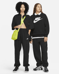 Soft and warm, these oversized Club Fleece sweatpants are perfect for days when comfort is everything. Loose through the hip and thigh, the leg is finished with an elasticated cuff at the ankle for a perfectly cinched-in look. Benefits - Our best-selling fleece for a reason, Club Fleece has a cozy, familiar feel and consistent fit you can return to again and again. Brushed for added warmth and softness, it’s an ideal layer for colder temperatures. - Pockets provide quick storage for keys, phone and cold hands. Product Details - 80% cotton/20% polyester - Embroidered Futura logo - Flat drawcord and elastic waist - Hand pockets - Machine wash - Imported - Shown: Black/White - Style: DQ5800-010 SIZE & FIT Oversized fit: exaggerated and spacious Fl length: hits below ankle Fits large; we recommend ordering a size down