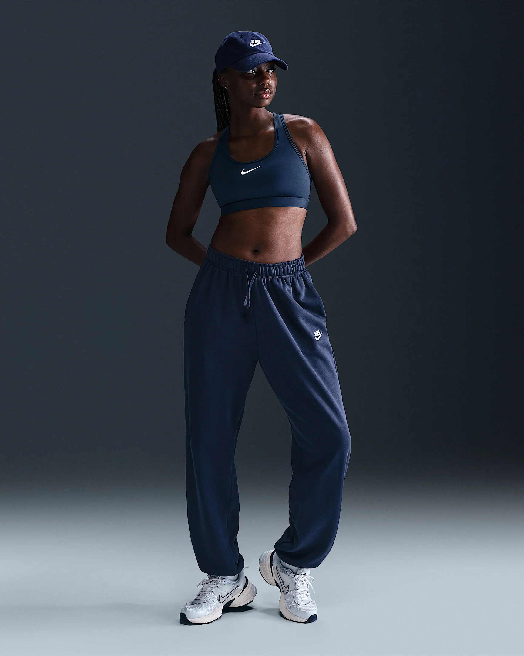 Soft and warm, these oversized Club Fleece sweatpants are perfect for days when comfort is everything. Loose through the hip and thigh, the leg is finished with an elasticated cuff at the ankle for a perfectly cinched-in look. Benefits - Our best-selling fleece for a reason, Club Fleece has a cozy, familiar feel and consistent fit you can return to again and again. Brushed for added warmth and softness, it’s an ideal layer for colder temperatures. - Pockets provide quick storage for keys, phone and cold hands. Product Details - 80% cotton/20% polyester - Embroidered Futura logo - Flat drawcord and elastic waist - Hand pockets - Machine wash - Imported - Shown: Obsidian/White - Style: DQ5800-451 SIZE & FIT Model is wearing size S and is 5′9″175cm Oversized fit: exaggerated and spacious Fl length: hits below ankle Fits large; we recommend ordering a size down