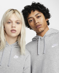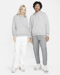 Club Fleece sweatshirts, universally loved for their coziness and consistency, are for everyone. A cold-weather essential, this easy-to-layer hoodie is a go-to whether you're pairing it with your favorite jacket or wearing it around the house. Benefits - Our best-selling fleece for a reason, Club Fleece has a cozy, familiar feel and consistent fit you can return to again and again. Brushed for added warmth and softness, it’s an ideal layer for colder temperatures. - Ribbed cuffs and hem help keep the hoodie in place while you move. - Jersey-lined 3-panel hood feels soft and smooth. Product Details - Body: 80% cotton/20% polyester. Hood Lining: 100% cotton. - Embroidered Futura logo - Machine wash - Imported - Shown: Dark Grey Heather/White - Style: DQ5793-063 SIZE & FIT Model is wearing size S and is 6′1″185cm Standard fit: easy and traditional