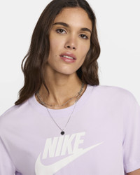 The Nike Sportswear Essential T-Shirt sets you up with soft cotton jersey and a cropped hem. Benefits - Cotton fabric is soft and comfortable. - Cropped hem hits above the hips. Product Details - Loose fit for a roomy feel - Fabric: 100% cotton - Machine wash - Imported - Shown: Violet Mist/White - Style: BV6175-511 SIZE & FIT Model is wearing size S and is 5′11″180cm Loose fit: roomy and relaxed