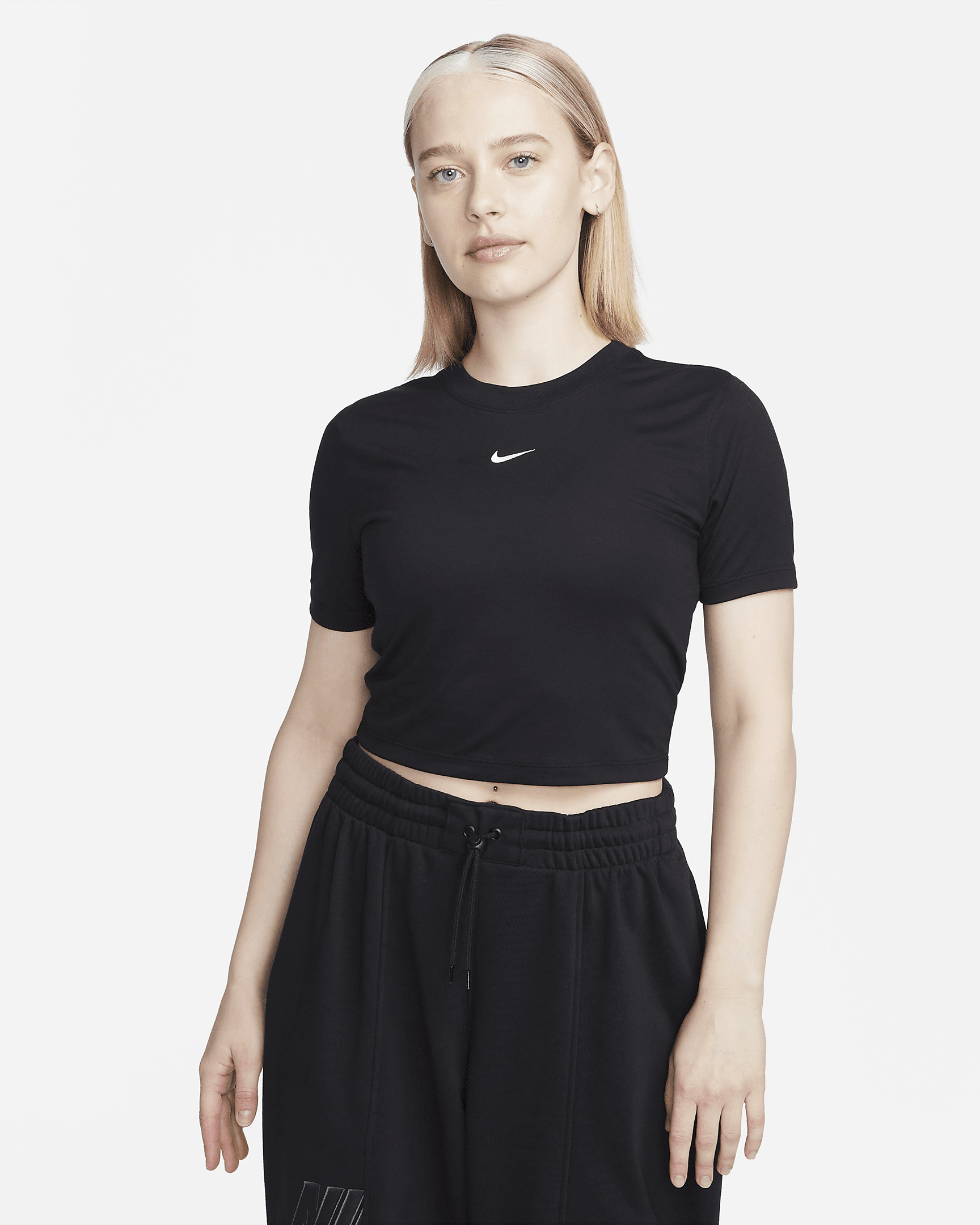 Made with our soft jersey fabric, this everyday tee gives you a premium look and feel. Its slim fit and cropped length make it comfortable enough to wear around the house yet elevated enough to wear out in the city. Product Details - Embroidered Swoosh logo - 49% polyester/48% modal/3% spandex - Machine wash - Imported - Shown: Black/White - Style: FB2873-010 SIZE & FIT Model is wearing size S and is 5′6″168cm Sm fit: sleek and tailored
