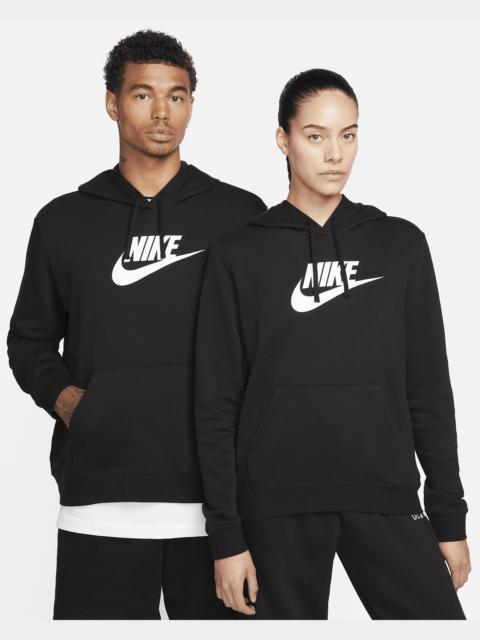 Club Fleece sweatshirts, universally loved for their coziness and consistency, are for everyone. Always soft and made with a relaxed fit, they’re basics that help you do more. An essential for cold weather, this cozy pullover has just enough room to layer comfortably without feeling too big. Benefits - Our best-selling fleece for a reason, Club Fleece has a cozy, familiar feel and consistent fit you can return to again and again. Brushed for added warmth and softness, it’s an ideal layer for colder temperatures. - Ribbed cuffs and hem help keep the hoodie in place while you move. Product Details - Body: 80% cotton/20% polyester. Hood lining: 100% cotton. - Printed Futura graphic - Ribbed hem and cuffs - Machine wash - Imported - Shown: Obsidian/White - Style: DQ5775-451 SIZE & FIT Model is wearing size S and is 5′8″173cm Standard fit: easy and traditional