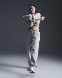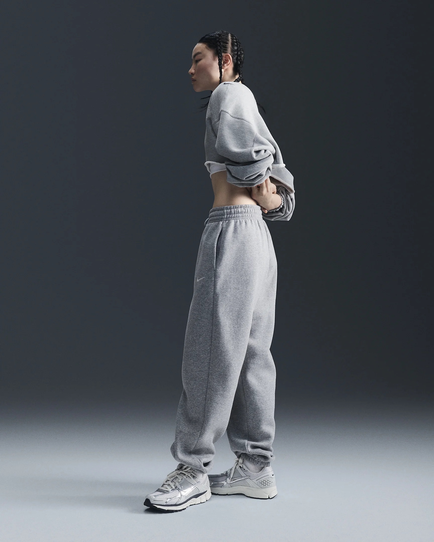 Grounded in style, comfort and versatility, meet our take on luxury loungewear. Whether you're running errands or rewatching your favorite show, these midweight fleece sweats feel extra soft on the inside to help keep you cozy. The oversized fit is intended to sit high on your hips for comfort and a stay-put feel. Benefits - Encased elastic waistband and drawstrings ensure a fit that feels just right. - Pockets provide quick storage for keys, phone and cold hands. Product Details - 80% cotton/20% polyester - Embroidered Swoosh logo on left leg - Machine wash - Imported - Shown: Dark Grey Heather/Sail - Style: FZ5996-063 SIZE & FIT Model is wearing size S and is 5′9″175cm Oversized fit: exaggerated and spacious Fl length: hits below ankle