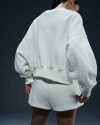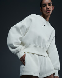 Grounded in style, comfort and versatility, meet our take on luxury loungewear. Our roomiest fit paired with exaggerated details (like the oversized pocket and taller ribbing) ensures this sweatshirt is anything but basic. All that's left to decide is whether to style it with the matching shorts or other pieces from your wardrobe. Benefits - Our midweight brushed fleece feels extra soft on the inside and smooth on the outside, helping you stay cozy while keeping its structured shape. - Dropped shoulder seams and roomy sleeves provide a relaxed, spacious feel. Product Details - Elongated ribbing - Embroidered Swoosh logo - 80% cotton/20% polyester - Machine wash - Imported - Shown: Sail/Black - Style: DQ5761-133 SIZE & FIT Model is wearing size S and is 5′11″180cm Oversized fit: exaggerated and spacious Fits large; we recommend ordering a size down