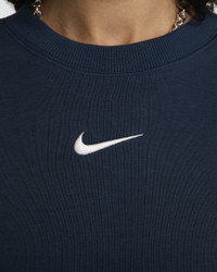 Grounded in style, comfort and versatility, meet our take on luxury loungewear. This classic sweatshirt helps you stay cozy all day long, thanks to its midweight fleece that feels soft yet structured. Plus, the taller ribbing and oversized fit give you a trend-right look. Benefits - Our midweight brushed fleece feels extra soft on the inside and smooth on the outside, helping you stay cozy while keeping its structured shape. - Dropped shoulder seams and oversized fit provide a casual, relaxed look. Product Details - Elongated ribbing - Embroidered Swoosh logo - Body: 80% cotton/20% polyester. Rib: 97% cotton/3% spandex. - Machine wash - Imported - Shown: Armory Navy/Sail - Style: DQ5733-478 SIZE & FIT Model is wearing size S and is 5′8″173cm Oversized fit: exaggerated and spacious Fits large; we recommend ordering a size down