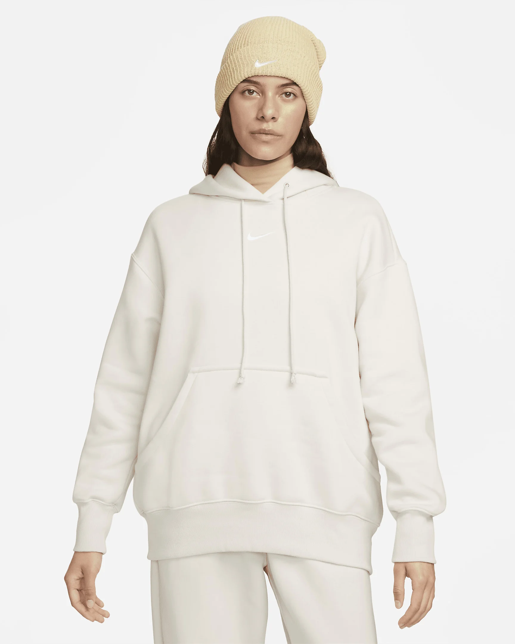 Grounded in style, comfort and versatility, meet our take on luxury loungewear. This classic hoodie helps you stay cozy all day long, thanks to midweight fleece that feels soft yet structured. Plus, exaggerated details (like taller ribbing and oversized fit) give you a trend-right look. Benefits - Our midweight brushed fleece feels extra soft on the inside and smooth on the outside, helping you stay cozy while keeping its structured shape. - Dropped shoulders and roomy sleeves provide a relaxed, oversized feel. Product Details - Drawcord hood - Elongated ribbing - Oversized pocket - Embroidered Swoosh logo - Body: 80% cotton/20% polyester. Hood lining: 100% cotton. - Machine wash - Imported - Shown: Light Orewood Brown/Sail - Style: DQ5860-104 SIZE & FIT Model is wearing size S and is 5′8″173cm Oversized fit: exaggerated and spacious Fits large; we recommend ordering a size down