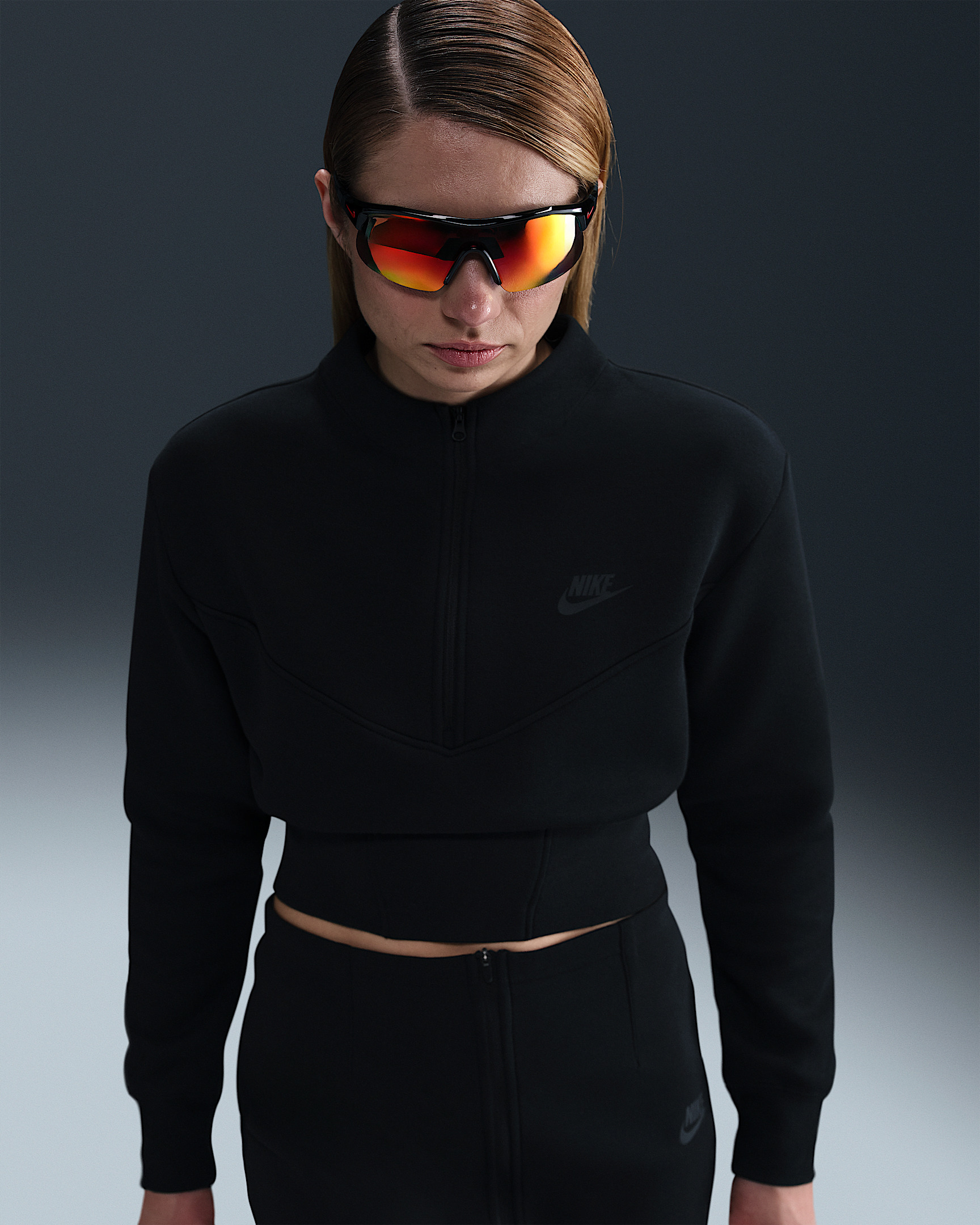 Tailored details for elevated comfort. This 1/2-zip top is made from premium, smooth-on-both-sides fleece for soft, structured warmth. Benefits - Low-profile zipper and chevron line come together for signature Tech Fleece look. - Ribbing at waist offers cinched-in, tailored look. Product Details - Body: 53% cotton/47% polyester. Rib: 97% cotton/3% spandex - Ribbed cuffs and panel on waist - Printed Futura logo at left chest - Machine wash - Imported - Shown: Black/Black - Style: HJ1031-010 SIZE & FIT Model is wearing size S and is 5′10″178cm Standard fit: easy and traditional