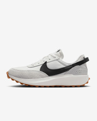 Retro gets modernized with these sleek sneaks inspired by the Nike Daybreak. Era-echoing suede and nylon are paired in complementary colors, and the updated wedge midsole gives you an extra lift. Style, comfort, iconic Waffle outsole—this is a perfect new addition to your daily rotation. Benefits - Swoosh wraps around your heel to form a pull tab, adding aesthetic appeal to on-and-off functionality. - Lifted foam midsoles give you an elevated look and all-day comfort. - Soft suede overlays nod to vintage materials while textile underlays add durability. - Rubber Waffle outsole adds durable traction and heritage style. Product Details - Padded collar - Exposed foam tongue - Traditional lacing - Perforations on heel - Shown: Sail/Gum Medium Brown/Summit White/Black - Style: DH9523-109 SIZE & FIT Fits small; we recommend ordering a half size up