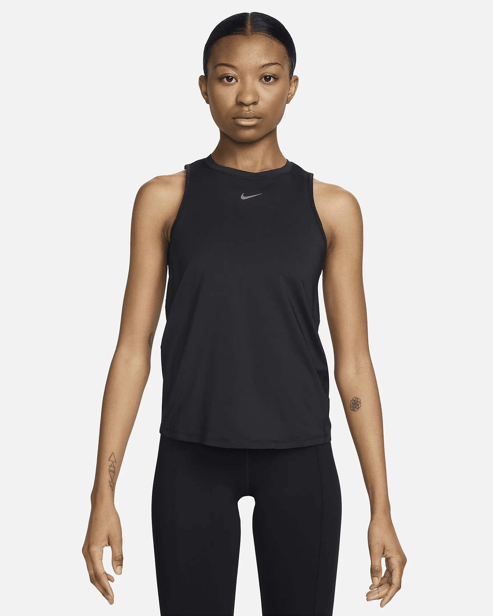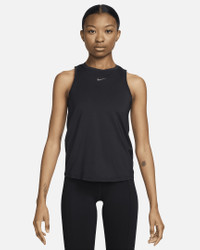 Up for a workout or down to chill, this Nike One Classic tank top is ready for whatever you are. Lightweight, silky-smooth fabric dries quickly and works for wherever your day takes you. A timeless, easy-fitting style and sweat-wicking tech help you feel confident, comfortable and dry from your morning stroll to your evening wind-down—and at all the stops in between. Product Details - 89% polyester/11% spandex - Machine wash - Imported - Reflective logo at center chest - Not intended for use as Personal Protective Equipment (PPE) - Shown: Black/Black - Style: FN2808-010 SIZE & FIT Standard fit: easy and traditional