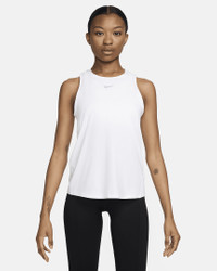 Up for a workout or down to chill, this Nike One Classic tank top is ready for whatever you are. Lightweight, silky-smooth fabric dries quickly and works for wherever your day takes you. A timeless, easy-fitting style and sweat-wicking tech help you feel confident, comfortable and dry from your morning stroll to your evening wind-down—and at all the stops in between. Product Details - 89% polyester/11% spandex - Machine wash - Imported - Reflective logo at center chest - Not intended for use as Personal Protective Equipment (PPE) - Shown: White/Black - Style: FN2808-100 SIZE & FIT Standard fit: easy and traditional