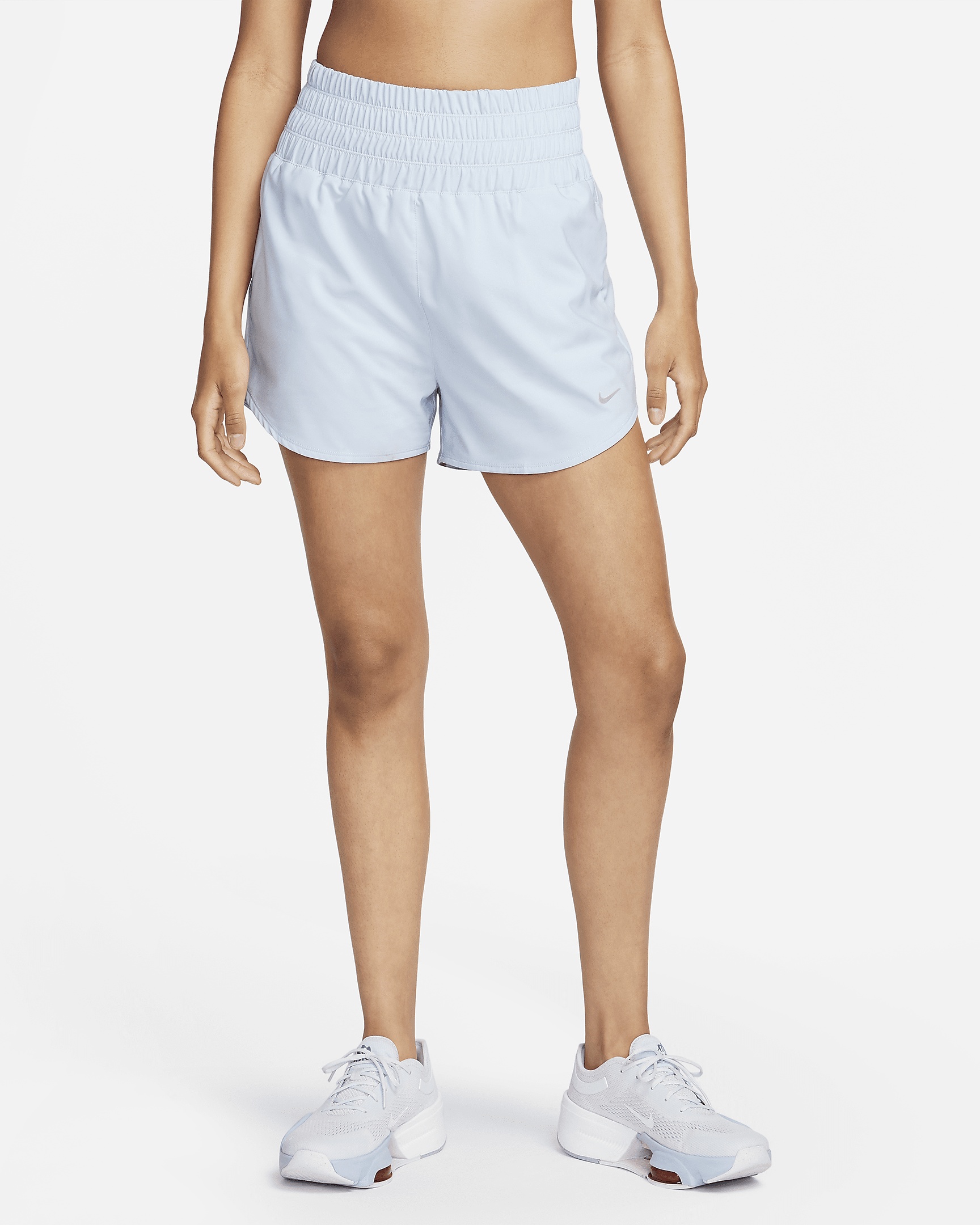 These shorts are the ones that are down for everything you do—from long walks to HIIT to running errands. Their silky-smooth, ultrasoft woven fabric is balanced with sweat-wicking tech so you have ultimate comfort while feeling dry as you work out. An extra-high waistband sits above your hips for a hugging, supportive fit. Benefits - Nike Dri-FIT technology moves sweat away from your skin for quicker evaporation, helping you stay dry and comfortable. - Multiple pockets provide easy storage for small essentials. Product Details - Body: 100% polyester. Lining: 90% polyester/10% spandex. - Extra high-rise elastic waistband - Machine wash - Imported - Not intended for use as Personal Protective Equipment (PPE) - Shown: Light Armory Blue - Style: DX6642-440 SIZE & FIT Model is wearing size S and is 5′10″177cm Loose fit: roomy and relaxed