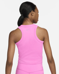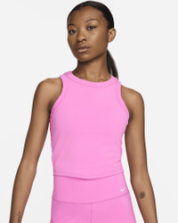 Up for a workout or down to chill, this Nike One Fitted tank top is ready for whatever you are. Midweight, peachy-soft fabric stretches with your every move and dries quickly. Slightly cropped and snug, it's ready to meet your favorite high-waisted leggings for a head-to-toe look that you can feel confident and comfortable in from your morning stroll to your evening wind-down—and at all the stops in between. More Benefits - Nike Dri-FIT technology moves sweat away from your skin for quicker evaporation, helping you stay dry and comfortable. - High neckline with racerback is designed to cover traditional sports bras. Product Details - 80% polyester/20% spandex - Machine wash - Imported - Reflective heat transfer Swoosh logo at center back - Not intended for use as Personal Protective Equipment (PPE) - Shown: Playful Pink/Black - Style: FN2806-675 SIZE & FIT Tight fit: snug and form-fitting