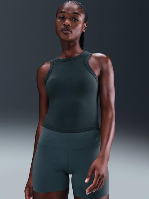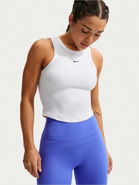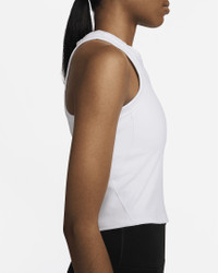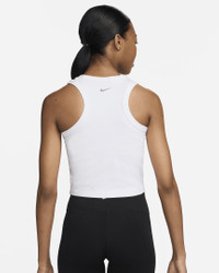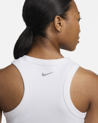 Up for a workout or down to chill, this Nike One Fitted tank top is ready for whatever you are. Midweight, peachy-soft fabric stretches with your every move and dries quickly. Slightly cropped and snug, it's ready to meet your favorite high-waisted leggings for a head-to-toe look that you can feel confident and comfortable in from your morning stroll to your evening wind-down—and at all the stops in between. More Benefits - Nike Dri-FIT technology moves sweat away from your skin for quicker evaporation, helping you stay dry and comfortable. - High neckline with racerback is designed to cover traditional sports bras. Product Details - 80% polyester/20% spandex - Machine wash - Imported - Reflective heat transfer Swoosh logo at center back - Not intended for use as Personal Protective Equipment (PPE) - Shown: White/Black - Style: FN2806-100 SIZE & FIT Tight fit: snug and form-fitting