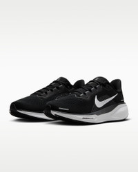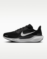 Responsive cushioning in the Pegasus provides an energized ride for everyday road running. Experience lighter-weight energy return with dual Air Zoom units and a ReactX foam midsole. Plus, improved engineered mesh on the upper decreases weight and increases breathability. Benefits - Upgraded breathable engineered mesh upper - ReactX foam midsole surrounds forefoot and heel Air Zoom units for an energized ride. - Signature waffle-inspired rubber outsole for traction and flexibility - Plush collar, tongue and sockliner for a secure and comfortable fit - What's new? All-new ReactX foam midsole is 13% more responsive than previous React technology. - Crafted for performance and planet, ReactX foam is engineered to reduce its carbon footprint by at least 43% in a pair of midsoles due to reduced manufacturing process energy compared to prior React foam. The carbon footprint of ReactX is based on cradle-to-gate assessment reviewed by PRé Sustainability B.V and Intertek China. Other midsole components such as airbags, plates or other foam formulations were not considered. Product Details - Weight: Approx. 251 g/8.8 oz (Women's US 8) - Heel-to-toe drop: 10 mm - MR-10 Last - Our best, most consistent fit (same as Pegasus 40) - Not intended for use as Personal Protective Equipment (PPE) - Shown: Black/Anthracite/White - Style: FQ0965-002