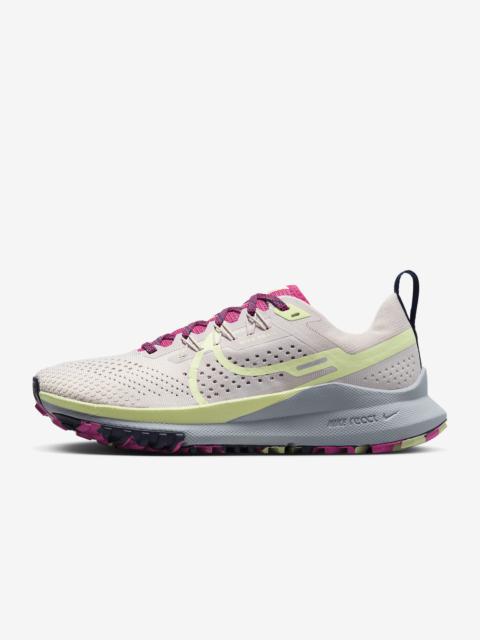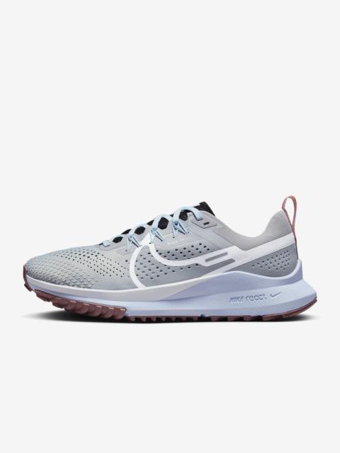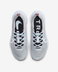 Running is your daily ritual, taking you from road to trail as you seek out new adventures and goals. Let the Nike Pegasus Trail 4 take you there and back again with its supportive and springy feel. Underfoot traction keeps you going over rocky terrain, while still providing a smooth ride for the road. Your trusted workhorse with wings is ready for an off-road journey. Product Details - Weight: Approx. 233 g (Women's size 8) - Heel-to-toe drop: 9.5 mm - The inspirational message by the heel will vary between "JUST DO IT" and "JUST RUN IT" depending on the shoe - Not intended for use as Personal Protective Equipment (PPE) - Shown: Light Smoke Grey/Black/Glacier Blue/White - Style: DJ6159-005 SIZE & FIT Fits small; we recommend ordering a half size up