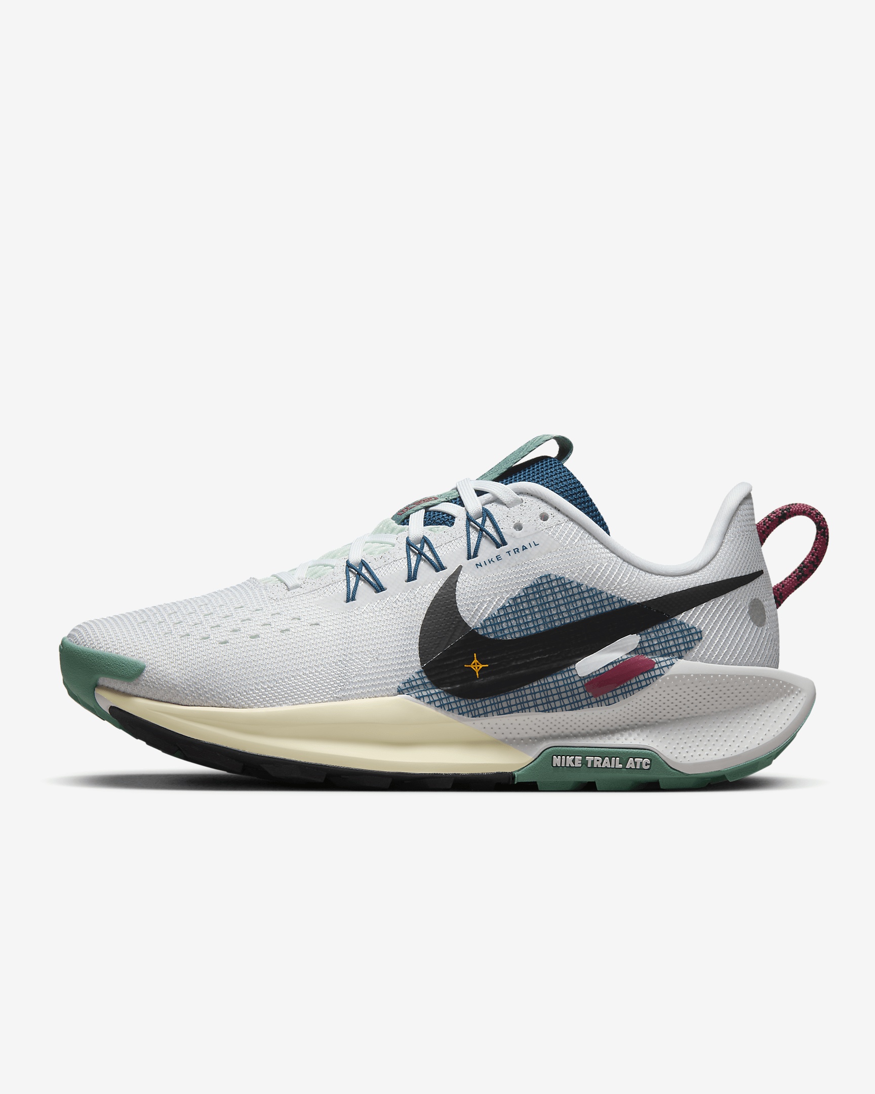 Spread your wings and see what nature brings in the Peg Trail 5. Now equipped with an ultraresponsive ReactX foam midsole, this shoe is a true dual threat for dirt and concrete. This special design is part of our ongoing #IYKYK series. It traverses the Pyrenees mountains via the GR 11, using the coastal lighthouses as your guide from the Mediterranean Sea to the Cantabrian Sea. Product Details - Weight: Approx. 243 g/8.5 oz (Women's US 8) - Heel-to-toe drop: 9.5 mm - Reflective details - Not intended for use as Personal Protective Equipment (PPE) - Shown: White/Court Blue/Cedar/Black - Style: DV3865-100