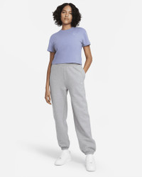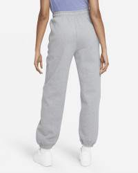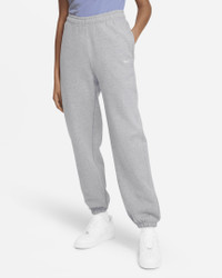 Premium fabric and a laid-back design highlight the Nike Solo Swoosh Pants. Part of the Essentials collection, these pants use a soft feel with a loose fit for all-day wear. Benefits - Brushed-back fabric delivers soft warmth. - Drop-in pockets offer easy-access storage. - An elastic waistband with a drawcord lets you adjust the fit. - Elastic cuffs help seal in warmth. Product Details - Loose fit for a roomy feel - Embroidered Swoosh - Solid: Body: 84% cotton/16% polyester. Pocket Bag: 100% cotton. - Heather: Body: 85% cotton/15% polyester. Pocket Bag: 100% cotton. - Materials may vary. Check label for actual content. - Machine wash - Imported - Shown: Dark Grey Heather/White - Style: CW5565-063 SIZE & FIT Loose fit: roomy and relaxed Fl length: hits below ankle Fits large; we recommend ordering a size down