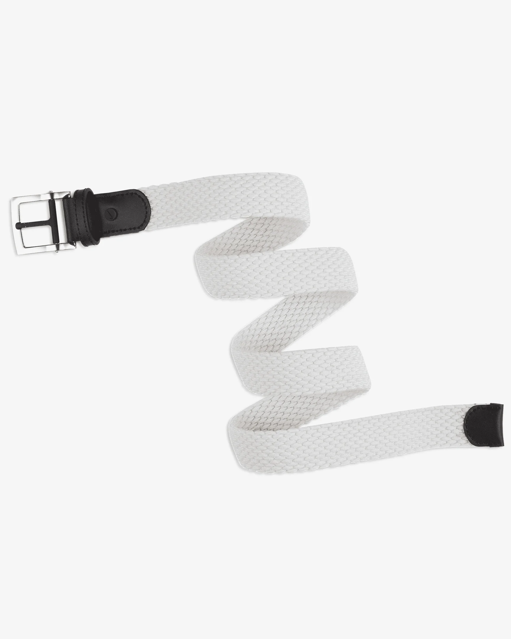The Nike Stretch Woven Belt is made with durable materials in a flexible design for lasting comfort, round after round. Benefits - Stretch fabric and G-Flex inset at buckle let you move freely. - Woven construction and leather details provide durability. - No-hole strap offers a customizable fit. Product Details - Large metal buckle - Materials: 55% polypropylene/30% rubber/10% leather/5% polyester. - Width: 30 mm - Imported - Shown: White - Style: 131150-100