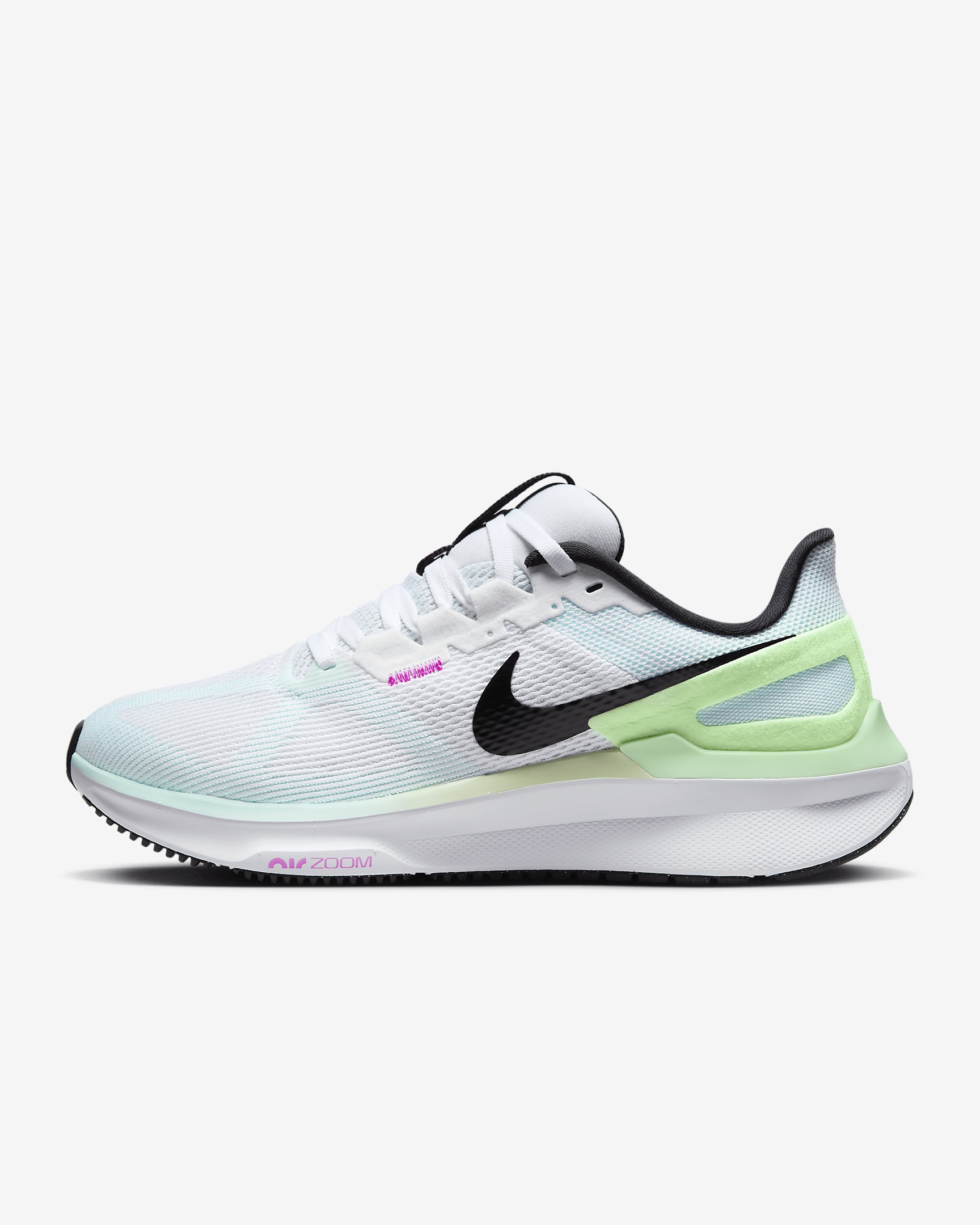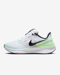 Supportive cushioning provides steadiness for everyday runs. Experience a stable platform without sacrificing performance with a combination of Cushlon 3.0 foam and a Zoom Air unit. Plus, a higher stack height makes it more comfortable, stable, and supportive than ever. Benefits - Breathable engineered mesh upper has targeted zones for support - Cushlon 3.0 foam midsole with a Zoom Air unit in the forefoot for cushioning and stability - Durable waffle outsole for grip and stability - Midfoot support system for enhanced arch support to control pronation - What’s New? New Cushlon 3.0 foam underfoot and a higher stack height make it our most stable and supportive model yet. Product Details - Weight: Approx. 241g/ 8.5oz (Women's US 8) - Heel-to-toe drop: 10mm - MR-10 Last - Our best, most consistent fit - Not intended for use as Personal Protective Equipment (PPE) - Shown: White/Glacier Blue/Vapor Green/Black - Style: DJ7884-105 SIZE & FIT Fits small; we recommend ordering a half size up