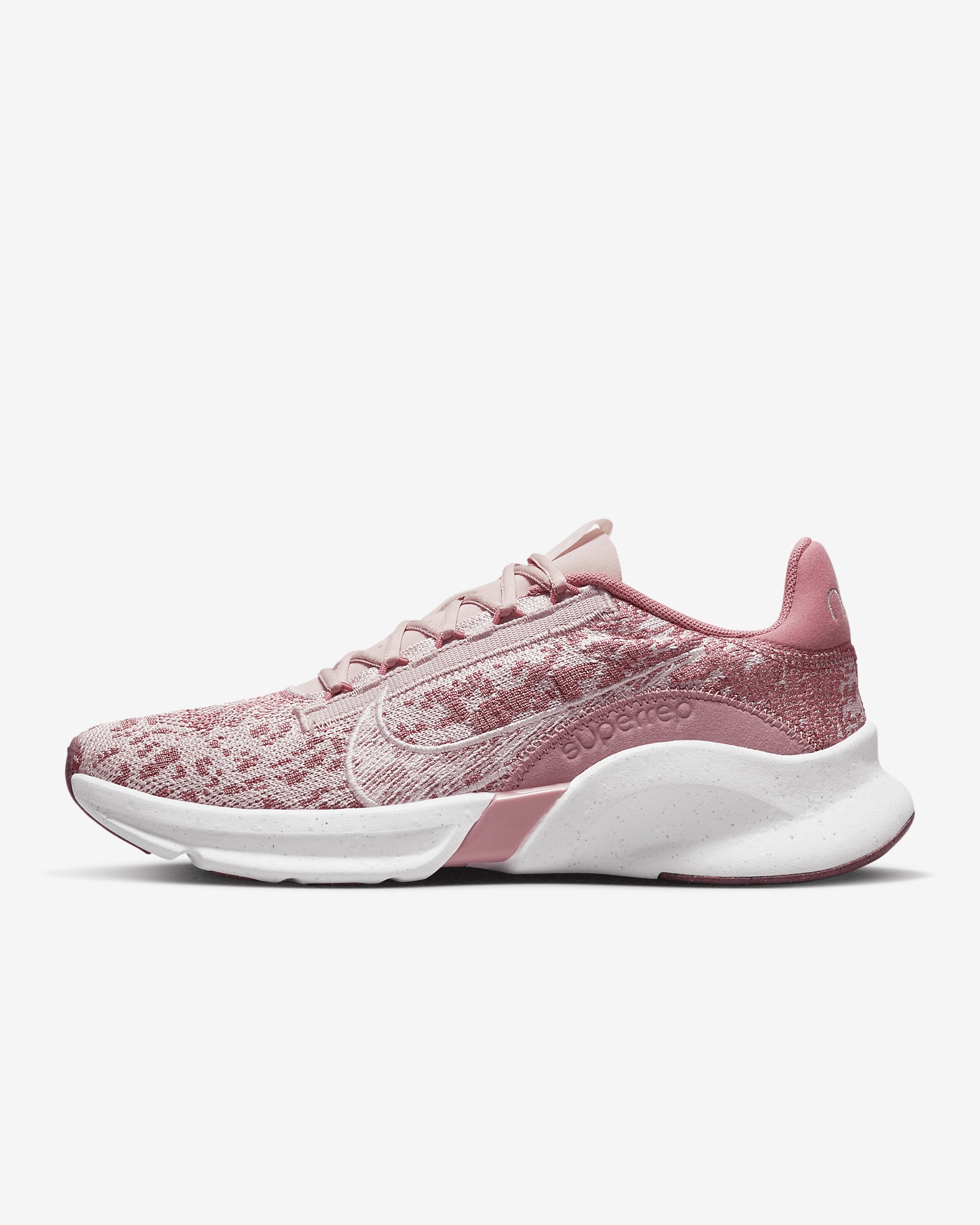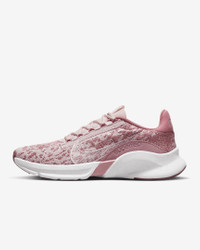 The new Nike SuperRep Go 3 Flyknit is a radical design story rooted in innovation. Made with at least 20% recycled content by weight, the zoned Flyknit construction wraps your foot in 360 degrees of comfort and support. A finely ground, reclaimed foam midsole gives you responsive cushioning for high-impact training. The lightweight, packable design lets you keep them close, no matter where your next workout takes you. Product Details - Zigzag stitching - Embroidered Swoosh design - Shown: Desert Berry/Barely Rose/Elemental Pink/Sail - Style: DH3393-600 SIZE & FIT Fits small; we recommend ordering a half size up