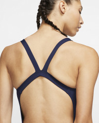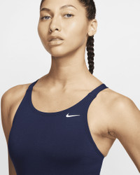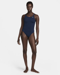 The Nike Fastback Swimsuit is perfect for all water activities, with wide straps designed for a secure fit, standard bottom coverage and flat seams that help reduce chafing. Benefits - Nike HydraStrong fabric provides long-lasting durability, swim after swim. - High-support straps are ideal for higher-impact activities. Product Details - Heat-transferred Swoosh design - Body: 53% polyester/47% PBT. Lining: 100% polyester. - Hand wash - Imported - Shown: Midnight Navy - Style: NESSA001-440 SIZE & FIT Standard fit: easy and traditional