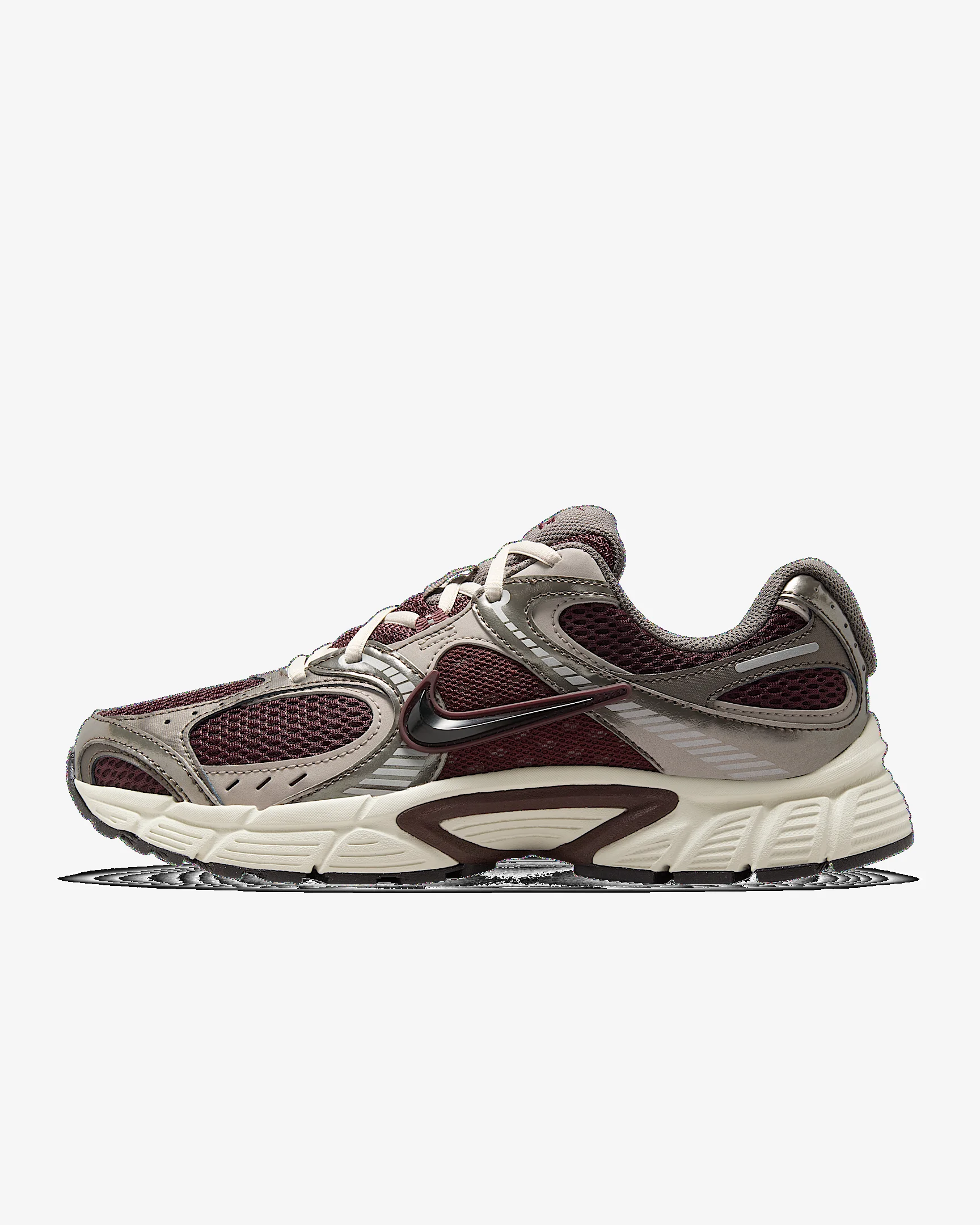 Tackle the everyday in a shoe that matches comfort with style. Staying true to its Y2K roots, the V5 RNR has a foam midsole that's chunky yet lightweight. Plus, metallic details and a 3D Swoosh logo elevate this retro runner. Benefits - Mesh upper with synthetic leather overlays is breathable and durable. - Plush collar lining and foam midsole provides all-day comfort. - Rubber outsole with '00s-inspired grooves adds great traction. Product Details - 3D Swoosh logo - Reflective details - Not intended for use as Personal Protective Equipment (PPE) - Shown: Burgundy Crush/College Grey/Light Orewood Brown/Black - Style: HQ7901-602
