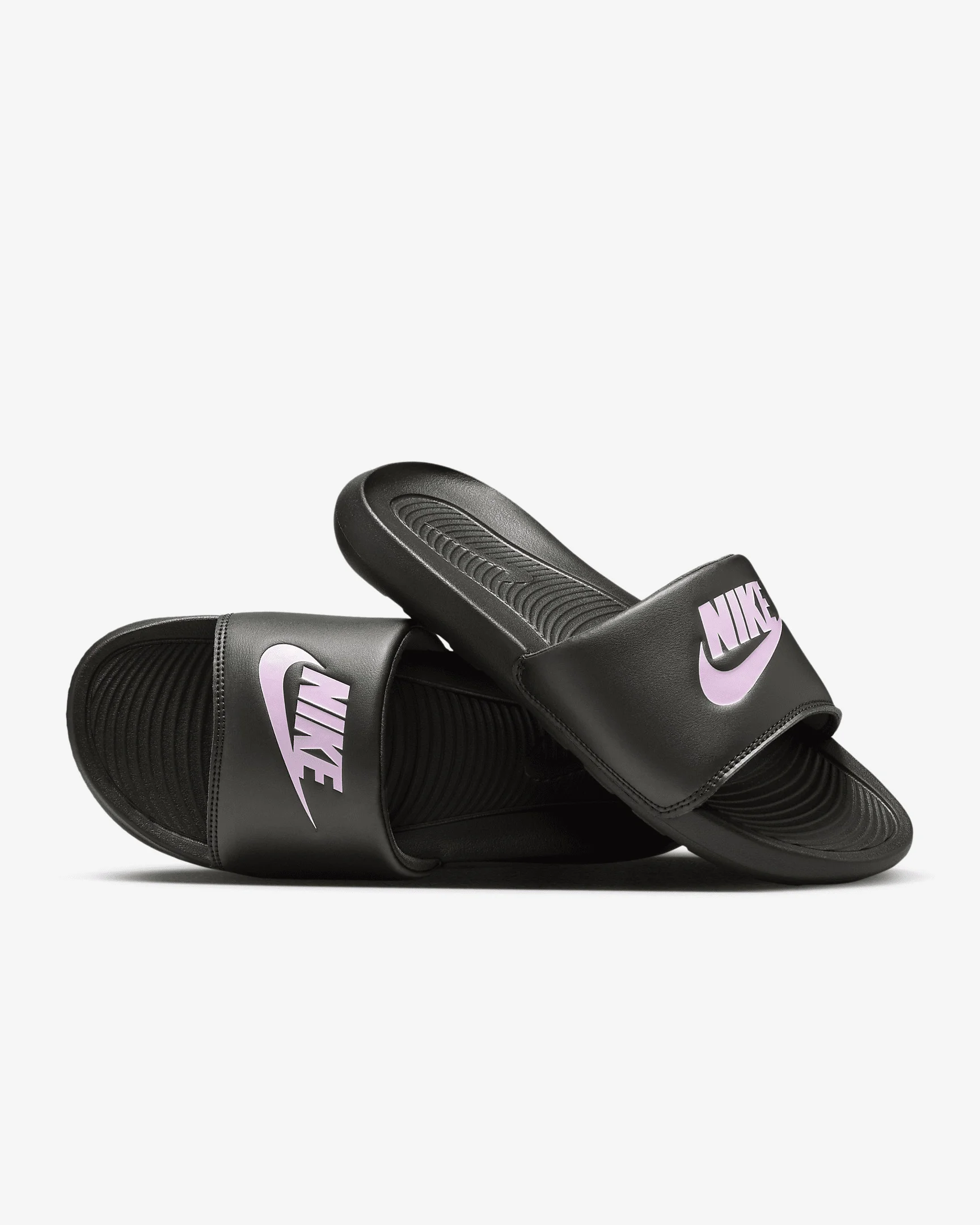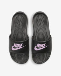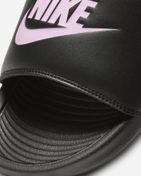 From the beach to gardening to sitting on the couch, the Nike Victori One perfects a classic design. Delivering lightweight comfort that’s easy to wear, it features new softer, more responsive foam. The contoured grip pattern helps cradle and hold your foot in place. Benefits - The new, softer foam and mechanical cushioning adds unbelievable responsiveness and comfort that lasts. - The contoured footbed cradles and supports your foot while its grip pattern helps keep your foot in place. - The rolled top edge of the strap adds to the comfort while its thick padding feels soft. - The new strap design adds additional space, accommodating more foot sizes. - The outsole features a new pattern for added traction. Product Details - Bold "NIKE" and Swoosh designs on the strap lets you rep your brand - Shown: Black/Black/Light Arctic Pink - Style: CN9677-002