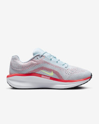 Responsive cushioning provides a balanced ride for everyday runs. Experience energy return with a combination of Cushlon 3.0 foam and a full-length Nike Air unit in the midsole. Plus, an elastic midfoot band and spacious forefoot provide an accommodating, comfortable fit. Benefits - Breathable engineered mesh upper - Cushlon 3.0 foam midsole with a full-length Nike Air unit - Rubber waffle-inspired outsole for reliable traction - Elastic midfoot band to accommodate a variety of fits and activities - What’s New? A spacious forefoot, wider heel and even better breathability. Product Details - Weight: Approx. 262 g/9.2 oz (Women's US 8) - Heel-to-toe drop: 10 mm - MR-10 Last - Our best, most consistent fit - Reflective details - Not intended for use as Personal Protective Equipment (PPE) - Shown: Glacier Blue/Bright Crimson/Sail/Barely Volt - Style: FJ9510-402