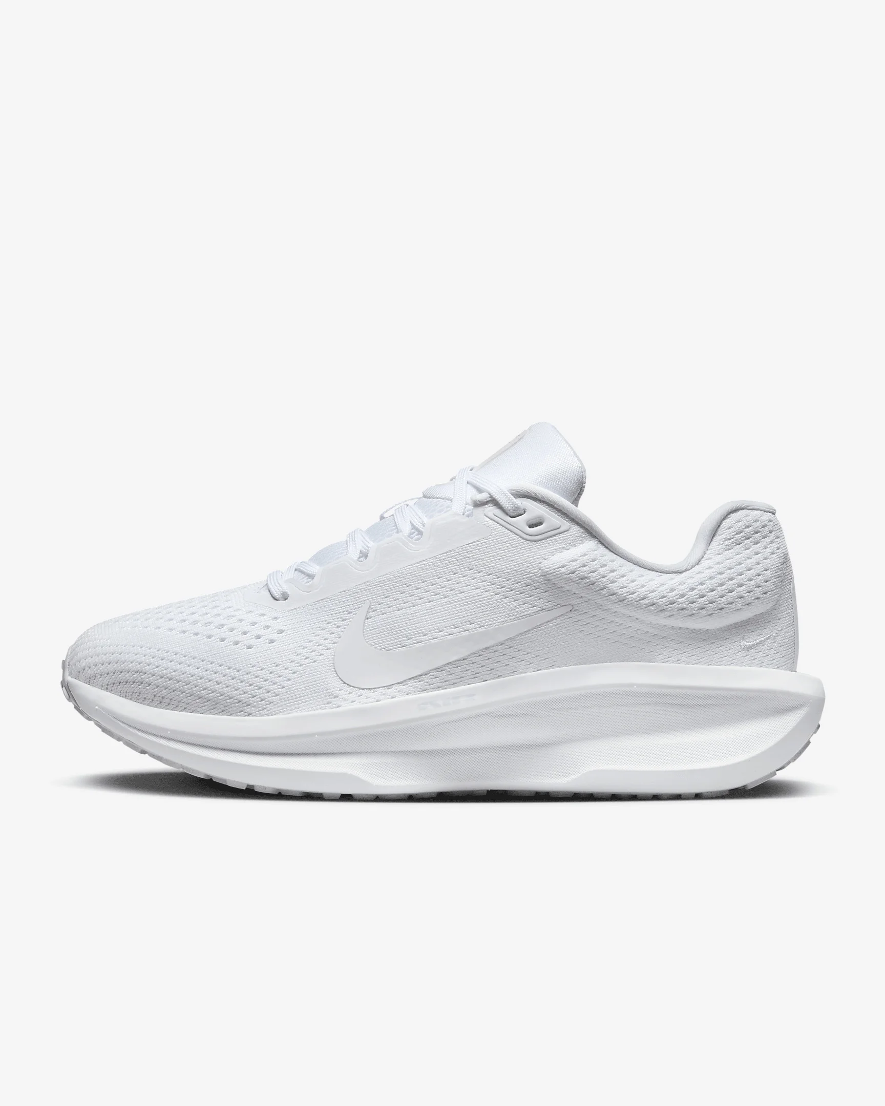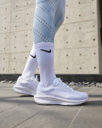 Responsive cushioning provides a balanced ride for everyday runs. Experience energy return with a combination of Cushlon 3.0 foam and a full-length Nike Air unit in the midsole. Plus, an elastic midfoot band and spacious forefoot provide an accommodating, comfortable fit. Benefits - Breathable engineered mesh upper - Cushlon 3.0 foam midsole with a full-length Nike Air unit - Rubber waffle-inspired outsole for reliable traction - Elastic midfoot band to accommodate a variety of fits and activities - What’s New? A spacious forefoot, wider heel and even better breathability. Product Details - Weight: Approx. 262 g/9.2 oz (Women's US 8) - Heel-to-toe drop: 10 mm - MR-10 Last - Our best, most consistent fit - Reflective details - Not intended for use as Personal Protective Equipment (PPE) - Shown: White/Photon Dust/White - Style: FJ9510-100