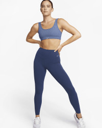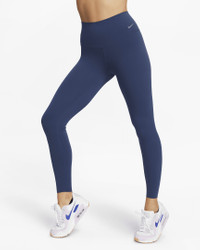 Whether it's yoga or a bike ride or a walk, you can move freely in our unbelievably soft Nike Zenvy leggings. Their InfinaSoft fabric is lightweight—but still squat-proof!—with softness that you can feel with every bend, stretch and shift. Fewer pockets give you a streamlined look, but the drop-in pocket at the center back is still big enough to hold your phone. Plus, they're durable enough for you to move, wash and wear again and again. Benefits - Designed to help reduce rolling, pinching and sliding, extra-wide waistband helps hold you up and smooths waist. - Nike Dri-FIT technology moves sweat away from your skin for quicker evaporation, helping you stay dry and comfortable. Product Details - High-rise waistband - Full length - Body: 63% nylon/37% spandex. Gusset Lining: 84% nylon/16% spandex. - Machine wash - Imported - Not intended for use as Personal Protective Equipment (PPE) - Shown: Midnight Navy/Black - Style: DQ6013-410 SIZE & FIT Model is wearing size S and is 5′9″175cm Tight fit: snug and form-fitting Gentle support: feels ke a soft hug with plenty of freedom Fl length: hits below ankle High-Waisted: sits at or above your natural waist for more coverage