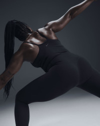 Whether it's yoga or a bike ride or a walk, you can move freely in our unbelievably soft Nike Zenvy leggings. Their InfinaSoft fabric is lightweight—but still squat-proof!—with softness that you can feel with every bend, stretch and shift. Fewer pockets give you a streamlined look, but the drop-in pocket at the center back is still big enough to hold your phone. Plus, they're durable enough for you to move, wash and wear again and again. Benefits - Designed to help reduce rolling, pinching and sliding, extra-wide waistband helps hold you up and smooths waist. - Nike Dri-FIT technology moves sweat away from your skin for quicker evaporation, helping you stay dry and comfortable. Product Details - High-rise waistband - Full length - Body: 63% nylon/37% spandex. Gusset Lining: 84% nylon/16% spandex. - Machine wash - Imported - Not intended for use as Personal Protective Equipment (PPE) - Shown: Black/Black - Style: DQ6013-010 SIZE & FIT Tight fit: snug and form-fitting Gentle support: feels ke a soft hug with plenty of freedom Fl length: hits below ankle High-Waisted: sits at or above your natural waist for more coverage