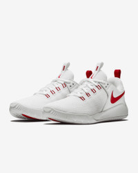 Designed for action on hard courts, the Nike Zoom HyperAce 2 Women's Volleyball Shoe helps keep you light and fast on your feet with a breathable upper and responsive cushioning. Benefits - Textile and synthetic construction for breathable comfort - Heel cage enhances support and stability - Foam midsole with Nike Zoom Air cushioning for lightweight responsiveness - Durable rubber tread delivers excellent traction - Shown: White/University Red - Style: AA0286-106 SIZE & FIT Fits small; we recommend ordering a half size up