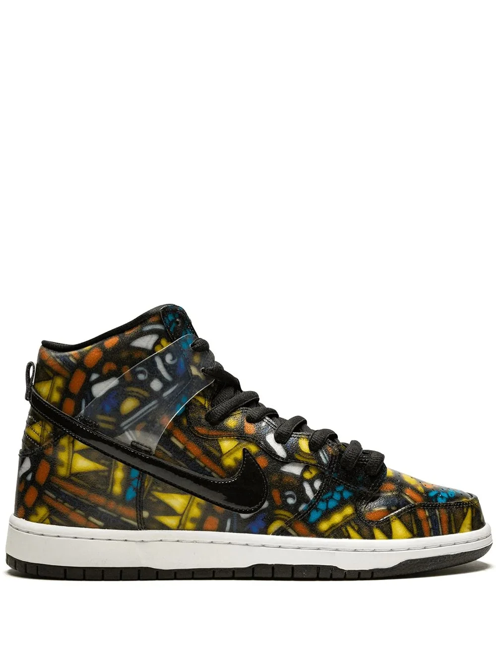 x Concepts Dunk Hi Pro SB "Stained Glass - Special Box" sneakers Looking to stand out from the crowd? Designed as a part of the Holy Grail Pack, these Concepts x Nike Dunk Hi Pro SB sneakers are sure to have all eyes on you. The stained-glass graphic adds a bold touch to this silhouette. Imported Composition Leather 100%
