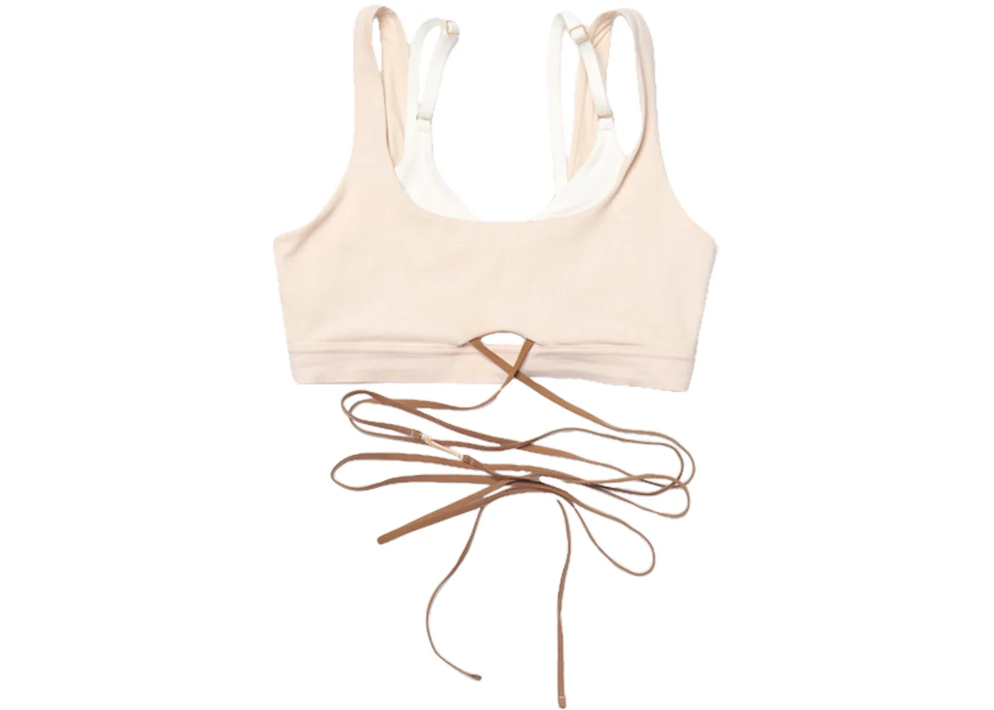 The Nike x Jacquemus La Brassiere is made with DRI-FIT technology that crafts it from soft nylon-blend. It offers light support and has playful straps that can be tied at the waist. The product also comes with a gold metal Swoosh that complements the straps and signs off the sport-luxe design. The Nike x Jacquemus La Brassiere Off White is made of 37% Spandex and 63% Nylon. Its style code is DN3226-219. This product is a collaboration between Nike and Jacquemus. The offshore white Nike x Jacquemus La Brassiere was released on July 5th, 2022 and retailed at $130. - Season SS22 - Color Off-White - Release Date 2022-06-28 - Retail Price 90 - Featured false
