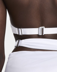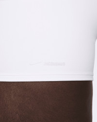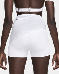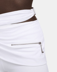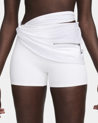 French fashion designer Simon Porte Jacquemus reunites with Nike to create a one-of-a-kind collection. Soft, smooth and stretchy—these modish shorts keep you feeling comfortable and confident. The wraparound waist includes a small pocket and metal hardware, adding a polished and practical finish to your asymmetrical look. Product Details - Body: 70% Nylon/30% Spandex. Overlay/Lining: 71% Nylon/29% Spandex. - Machine wash - Imported - Shown: White/White - Style: FJ3266-100 SIZE & FIT Standard fit: easy and traditional