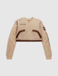 Cropped pullover sweatshirt. Crewneck. Graphic logo at chest and back. Silicone print and text at sleeve. Two zip pocket at front. Ribbed cuffs. Half-zip closure at center front. - 100% Polyester SKU: DM1287-247