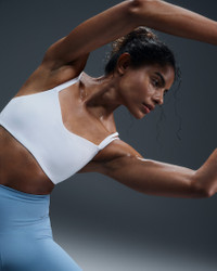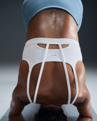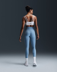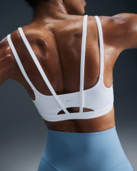 Feel calm and confident all day long in this strappy, gently supportive bra. A sewn-in 1-piece pad offers enhanced coverage and shaping while sweat-wicking technology helps keep you cool and comfortable. The fabric in the body and straps is lightweight, with softness that you can feel with every bend, stretch and shift. With a rounded V-neck to top it off, the bra has a clean finish that goes with any outfit. Benefits - Light support gives you a gentle hold with plenty of freedom that's great for low-impact workouts or all-day comfort. - Nike Dri-FIT technology moves sweat away from your skin for quicker evaporation, helping you stay dry and comfortable. Product Details - Body: 63% nylon/37% spandex. Front and back liner: 82% polyester/18% spandex. Pad: 100% polyurethane. Pad back fabric: 100% polyester. - Machine wash - Imported - Shown: White - Style: DO6608-100 SIZE & FIT Model is wearing size S Model height: 5′10″178cm Model bust: 31″79cm Tight fit: snug and form-fitting Light support: feels ke a soft hug with plenty of freedom