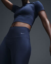 Whether it's yoga or a bike ride or a walk, you can move freely in our unbelievably soft Nike Zenvy leggings. Their InfinaSoft fabric is lightweight—but still squat-proof!—with softness that you can feel with every bend, stretch and shift. Fewer pockets give you a streamlined look, but the drop-in pocket at the center back is still big enough to hold your phone. Plus, they're durable enough for you to move, wash and wear again and again. Benefits - Designed to help reduce rolling, pinching and sliding, extra-wide waistband helps hold you up and smooths waist. - Nike Dri-FIT technology moves sweat away from your skin for quicker evaporation, helping you stay dry and comfortable. Product Details - 7/8 length - High-rise waistband - Body: 63% nylon/37% spandex. Gusset Lining: 84% nylon/16% spandex. - Machine wash - Imported - Not intended for use as Personal Protective Equipment (PPE) - Shown: Armory Navy/Black - Style: DQ6015-478 SIZE & FIT Tight fit: snug and form-fitting Gentle support: feels ke a soft hug with plenty of freedom 78 length: hits at ankle High-Waisted: sits at or above your natural waist for more coverage