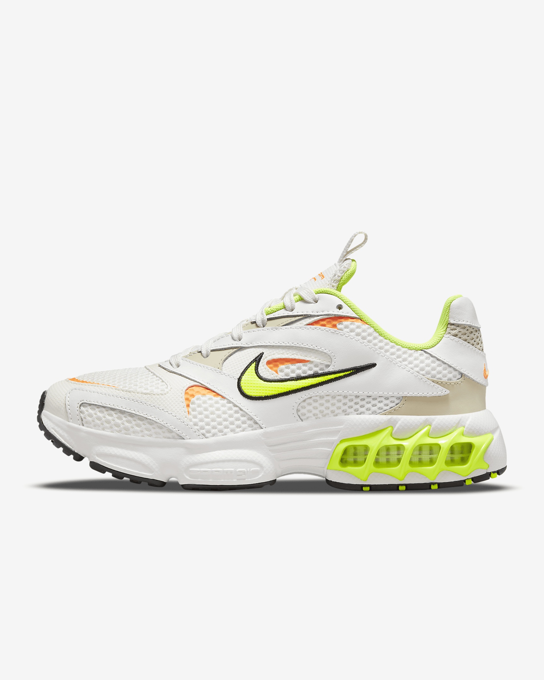 The techy, unconventional look of the Nike Zoom Air Fire nods to the history of performance running sneakers while creating a fresh look with its rich texturing and layering. The wild design lines and boldly framed Zoom Air cushioning combine with a thick foam midsole, adding comfort to go along with your defiant style. Benefits - The layered upper features open mesh and synthetic overlays, adding texture, depth and breathability. - Visible Zoom Air provides lightweight cushioning and is framed with a bold TPU cage. - The chunky foam midsole delivers a smooth, cushioned ride. - The embroidered details combine with dynamic overlays for a look that's proud to be loud. - The padded, low-cut collar looks sleek and feels comfortable. - We’re working to ditch the double box and ship shoes in a single shoebox made with at least 90% recycled content. Product Details - Tongue pull tab - Foam sockliner - Rubber sole - Not intended for use as Personal Protective Equipment (PPE) - Shown: Summit White/Rattan/Sail/Volt - Style: CW3876-104