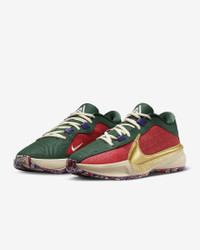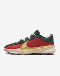 From fresh-faced rookie to raising a banner in the rafters, Giannis has always kept it a buck. This design honors the Freak’s franchise’s rich heritage while the special gold Swoosh logo nods to the championship glory Giannis helped bring to a fan base that’s head over heels for the MVP. Stacked with stunning speed for super-quick first steps, stuffed with that sort of springy cushioning that can withstand the all-game grind, the Giannis Freak 5 can help you channel your inner Greek Freak. Product Details - Shown: Gym Red/Fir/Court Purple/Metallic Gold - Style: DZ2944-600