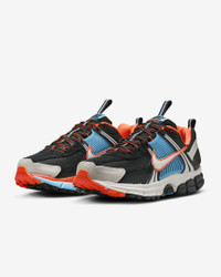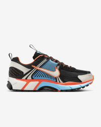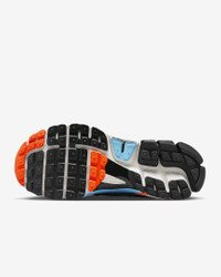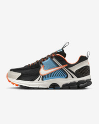 Carve a new lane for yourself in the Zoom Vomero 5—your go-to for complexity, depth and easy styling. The richly layered design includes textiles, real leather and plastic accents that come together to make one of the coolest sneakers of the season. Taking early 2000s running to modern heights, it's a true tech meets low-key love story. Benefits - Mixed materials on the upper create a layered look built to last. - Foam midsole with Zoom Air cushioning offers a responsive, smooth ride. - Plastic caging on the side adds support. - Ventilation ports on the heel keep it light and airy. - Rubber outsole gives you durable traction. Product Details - Reflective details - Not intended for use as Personal Protective Equipment (PPE) - Shown: Black/Blue Gaze/Total Orange/Light Bone - Style: FZ3963-010