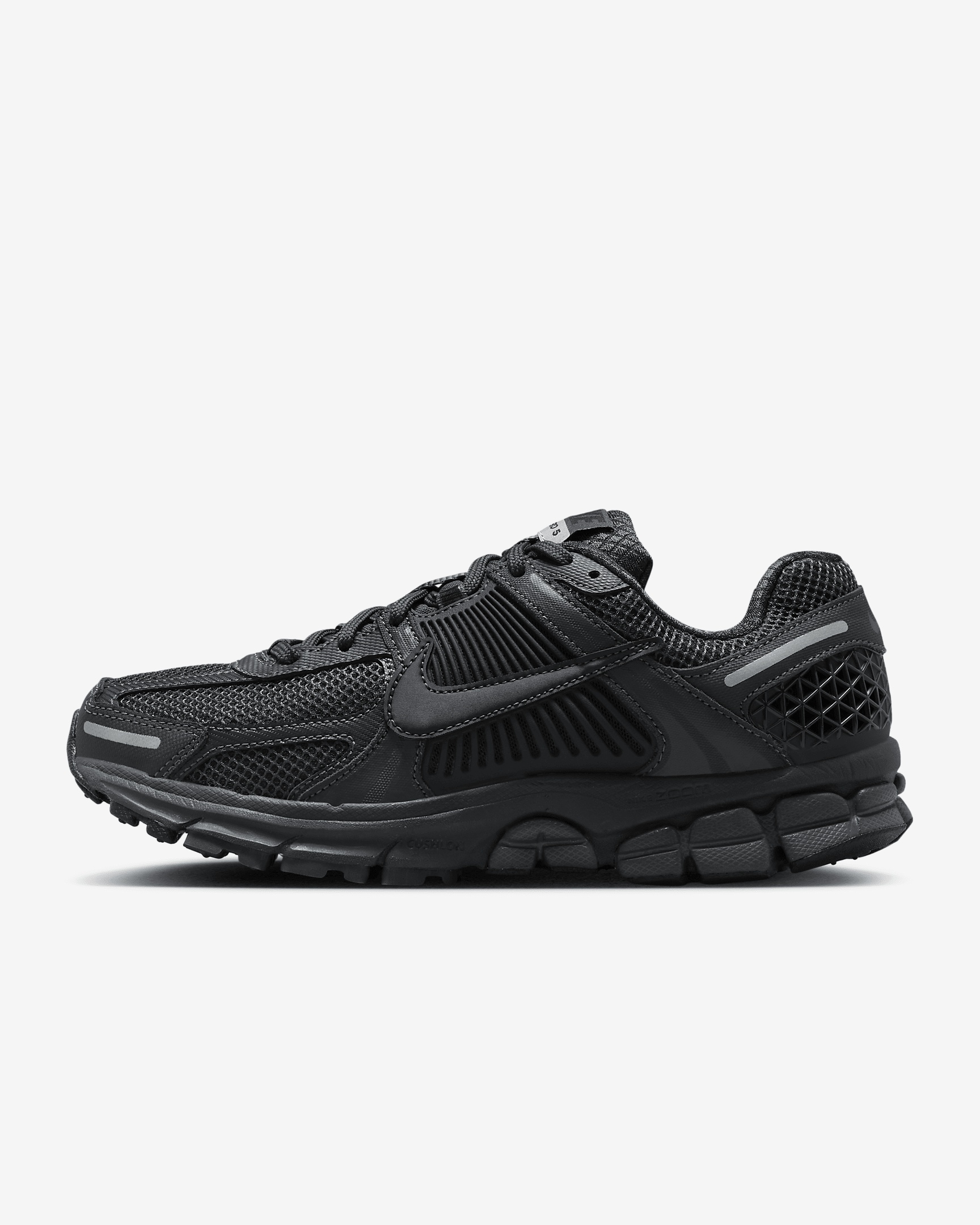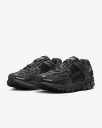 Carve a new lane for yourself in the Vomero 5—your go-to for depth, durability and easy styling. The richly layered design includes textiles, leather and plastic accents that come together to make one of the coolest sneakers of the season. Benefits - Synthetic leather on the upper adds durability. - Mesh panels and ventilation ports on the heel keep it light and breathable. - Snappy and responsive, Zoom Air cushioning helps provide a quick-off-the-ground sensation. - Plastic caging on the side adds support. - Rubber outsole gives you durable traction. Product Details - Reflective details - Not intended for use as Personal Protective Equipment (PPE) - Shown: Black/Black - Style: FQ7079-002