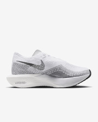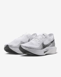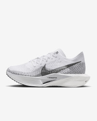 Catch ‘em if you can. Giving you race-day speed to conquer any distance, the Nike Vaporfly 3 is made for the chasers, the racers, the elevated pacers who can’t turn down the thrill of the pursuit. We reworked the leader of the super shoe pack and tuned the engine underneath to help you chase personal bests from a 10K to marathon. From elite runners to those new to racing, this versatile road-racing workhorse is for those who see speed as a gateway to more miles and more seemingly uncatchable highs. More Benefits - Light padding on the tongue helps reduce lace pressure at the top of your foot. - A new Waffle outsole pattern with perforations saves weight and delivers multi-surface traction in various weather conditions. - Offset heel seam helps reduce friction in the heel area. Product Details - Weight: Approx. 165 g (Women's size 8) - Heel-to-toe drop: 8 mm - Wider toe area for a roomier fit - Internal foam pod at heel for extra cushioning - Shown: White/Particle Grey/Metallic Silver/Dark Smoke Grey - Style: DV4130-100 SIZE & FIT Fits small; we recommend ordering a half size up